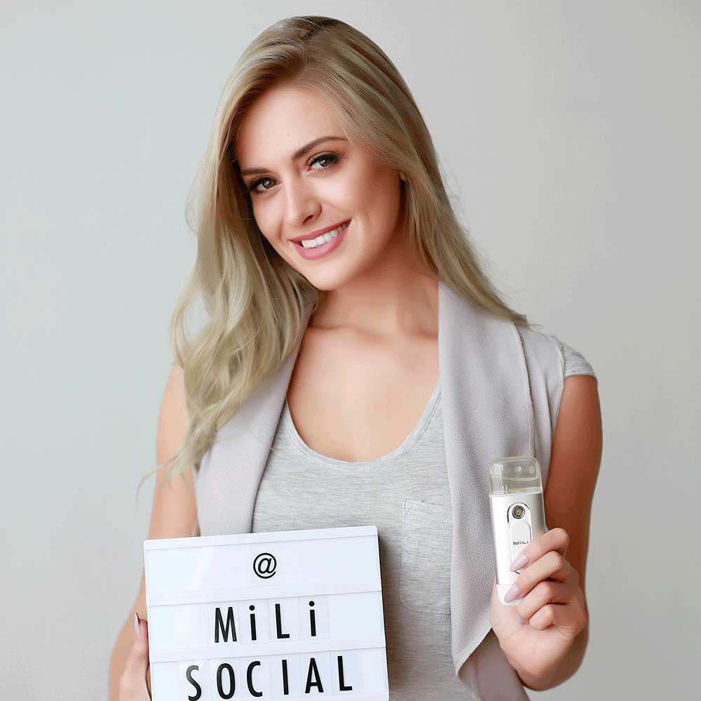 “MiLi智能富氫水噴霧儀噴出的水霧極其細膩,令我的妝容整日持久完美?!?